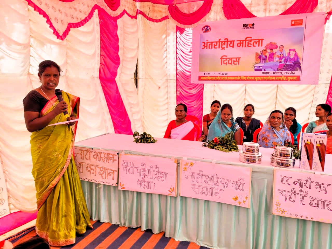 संस्था की कृषि विशेषज्ञ एलिना तिग्गा ने महिलाओं के अधिकारों की बात करते हुए कहा कि, अधिकार और सम्मान की शुरुआत अपने घर से ही होती है। कार्यक्रम के दौरान युवा साथी शुबानी तिर्की द्वारा पोषण और स्वास्थ्य से जुड़े सवाल-जवाब (क्विज) के माध्यम से प्रतिभागियों को महत्वपूर्ण जानकारी दी गई। महिलाओं ने स्थानीय पौष्टिक खाद्य पदार्थों की प्रदर्शनी लगाकर खाद्य विविधता के महत्व को भी साझा किया।